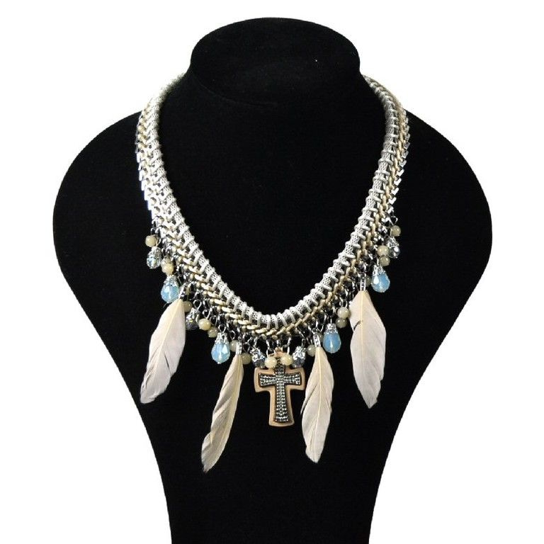 S_600045D - IBIZA LOOK Halskette / ihre Federn BROWN BAND (1.)