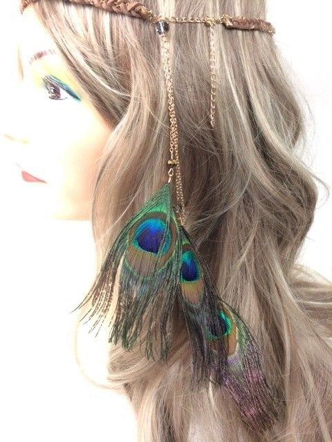 S_600029D - IBIZA LOOK BLUE BRAIDED Haarband mit Pfauenfedern (1.)