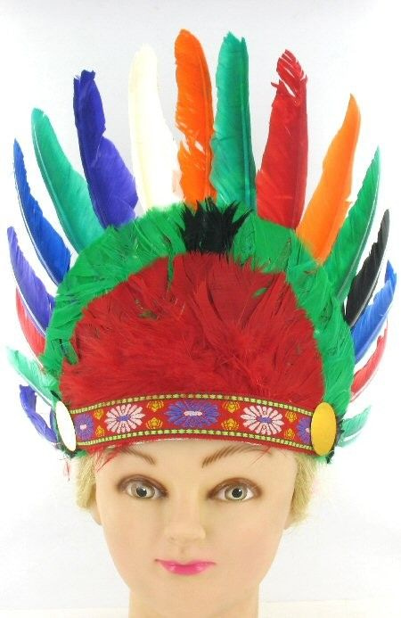 S_600024A - IBIZA LOOK geflochtenes Haar BAND MIT ORANGE FEDERN (1.)