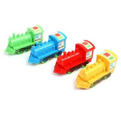 Nette bunte Pullback Lokomotiven. Ziehen Sie den Zug nach hinten und lassen Sie ihn .. und dann die Zugfahrt selbst nach vorn. kommt in den Mischungsfarben.