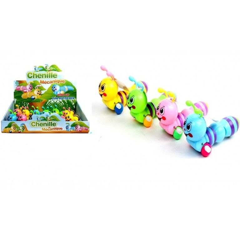 Niedliche große Windup Raupen in einer Anzeige. Drehen Sie die Raupen auf und läßt .. dann der Raupenantrieb ans Licht kommen. Mix ist in hellen Farben in einer Anzeige kommen.