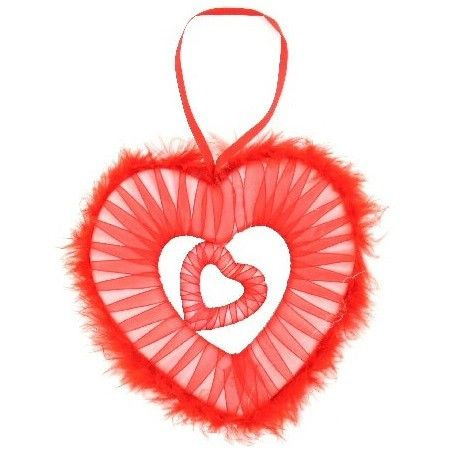 Ein rotes Herz Dekoration mit einem Plüsch-Grenze. Die Dekoration Herz finden Sie eine kleine Dekoration Herz zu finden. Das Zentrum ist mit einer Schleife um im Wohnzimmer oder im Fenster hängen ausgestattet.