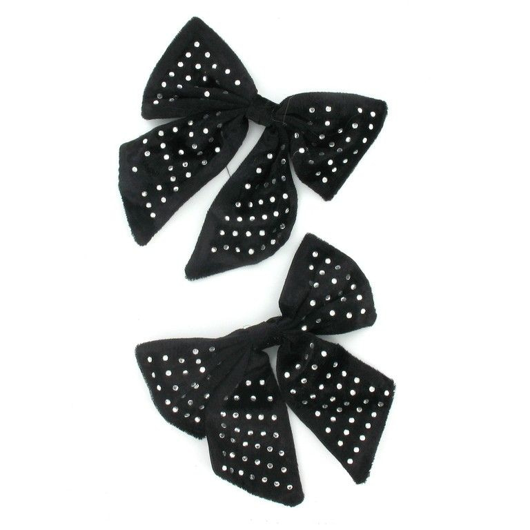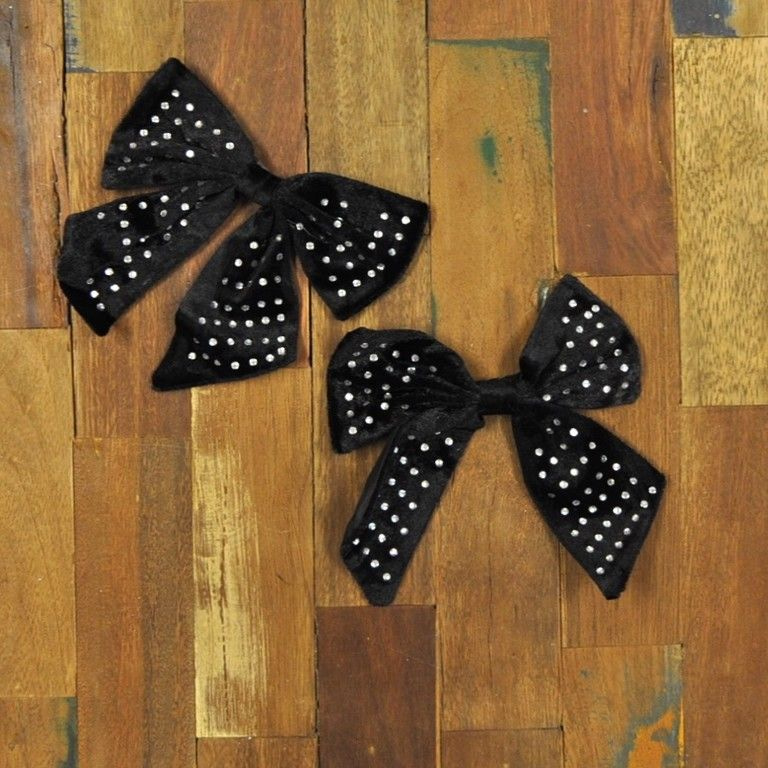2 schwarze Dekoration Bögen in einer Tasche. Die Bögen sind mit Strass bedeckt und Bögen haben einen Haken auf der Rückseite zum Aufhängen.