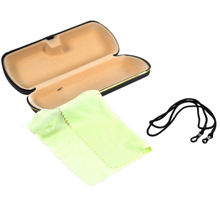 Ein gutes, preiswertes Set bestehend aus einem stabilen Hartschalenkoffer, Reinigungstuch und ein Trageband für Ihre Brille. Nizza Komplettset für wenig Geld.