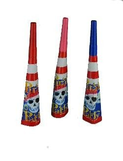 Das Horn ist rot / weißen Streifen mit einem Piraten-Totenkopf auf ihm und dem Text "Piratenpartei". Der Einheitspreis für einen einzelnen Satz von sechs Glocken.