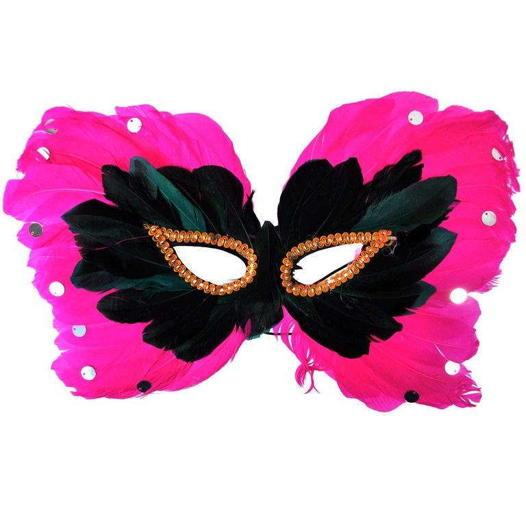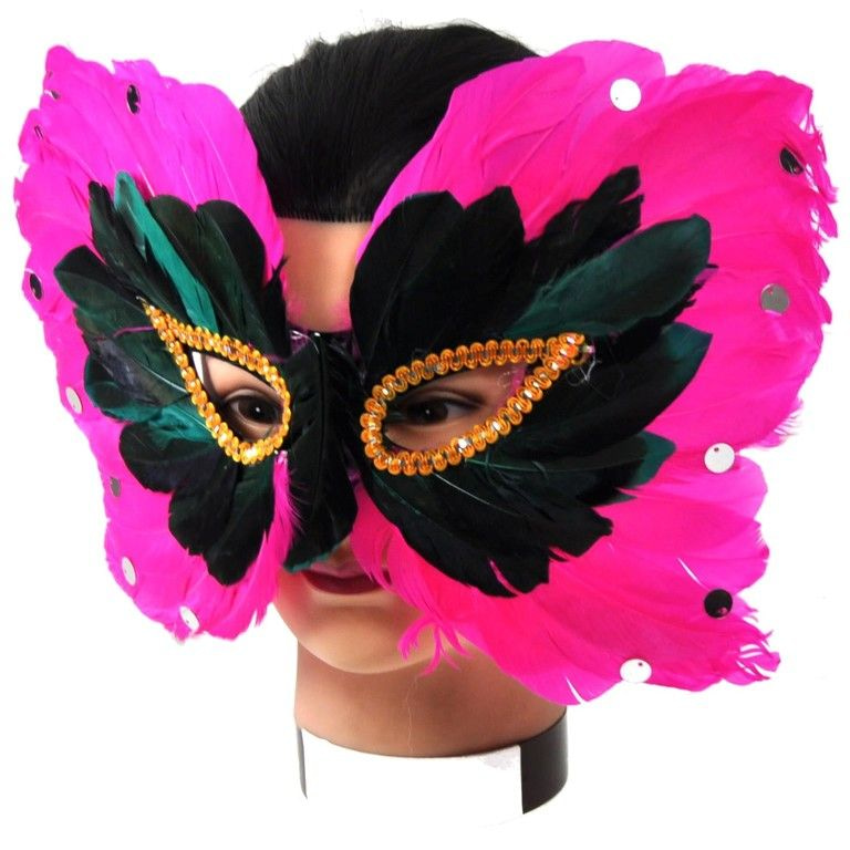Eine herrliche Parteischablone für Veranstaltungen, Karneval und Kostümfeste. Diese Maske ist flexibel und ist köstlich mit dem Gesicht. An der Vorderseite der Maske sind anmutige rosa und grünen Federn.