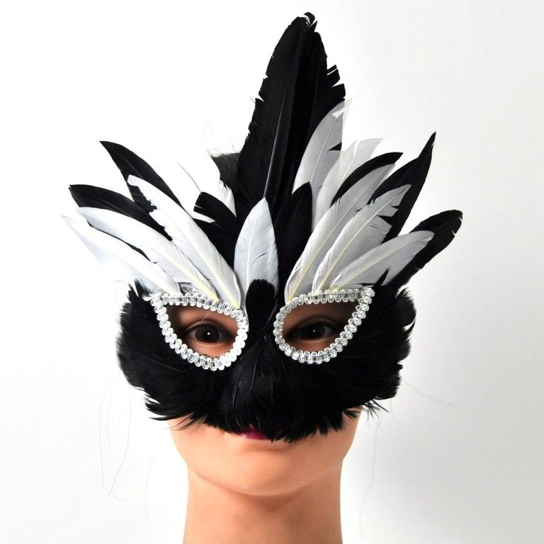 Eine herrliche Parteischablone für Veranstaltungen, Karneval und Kostümfeste. Diese Maske ist flexibel und ist köstlich mit dem Gesicht. An der Spitze der Maske sitzen verzierten weißen und schwarzen Federn.