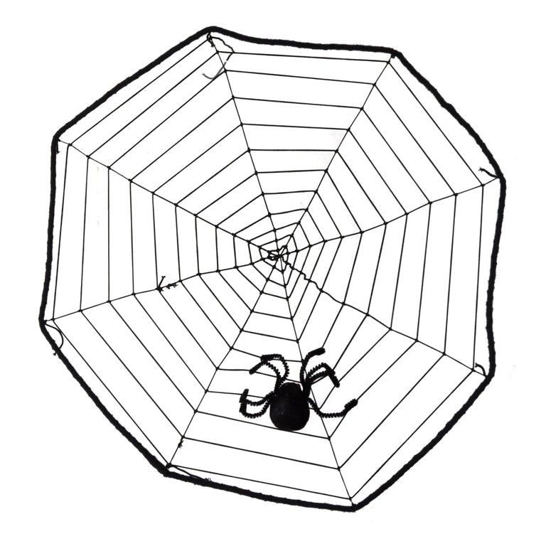 Eine große Spinnennetz Dekoration von ca. 38 cm. Durchmesser. Auf der Bahn sitzen und eine Spinne. Nett als Dekoration an Motto-Partys, Karneval und Halloween.