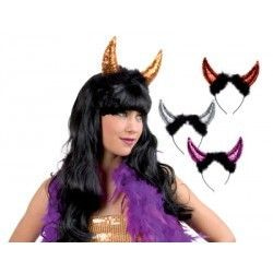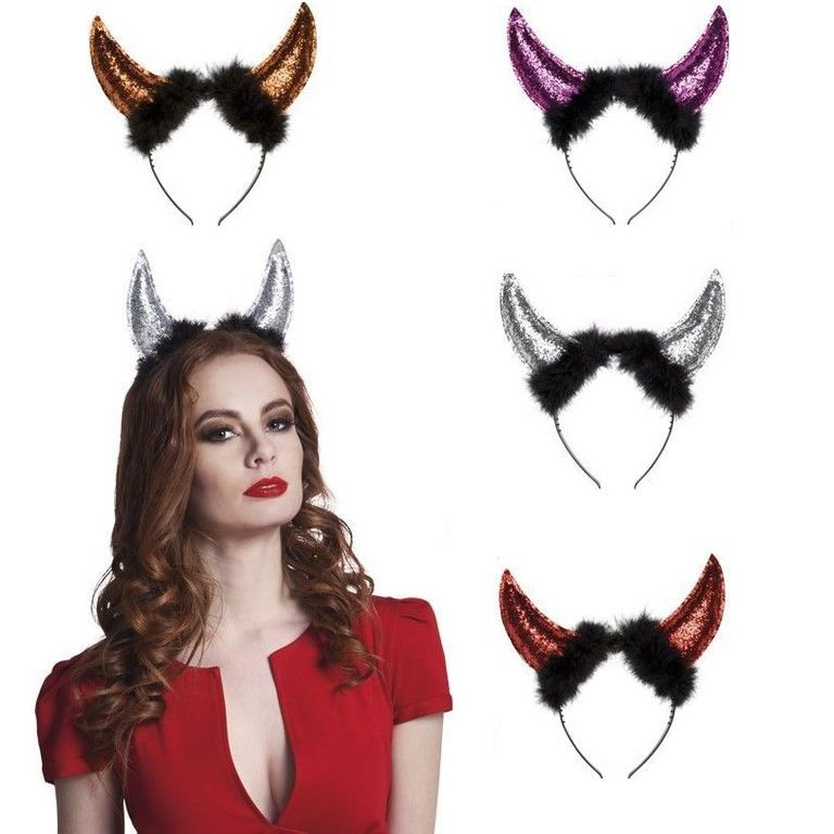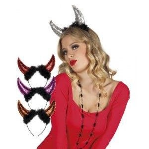 Eine schöne Diadem zeigt zwei Teufel Hörner mit Glitter gefüllt. Die Kronen kommen in verschiedenen Farben und sind ideal für Themenparties, Karneval und Halloween.
