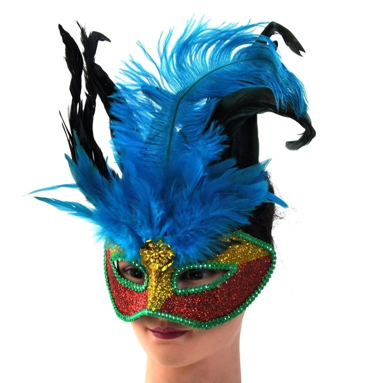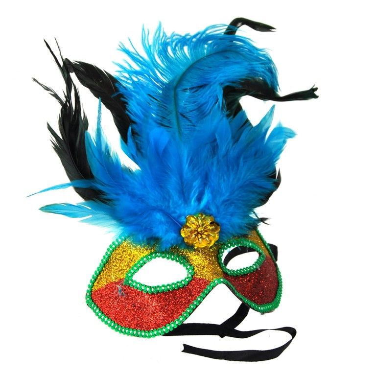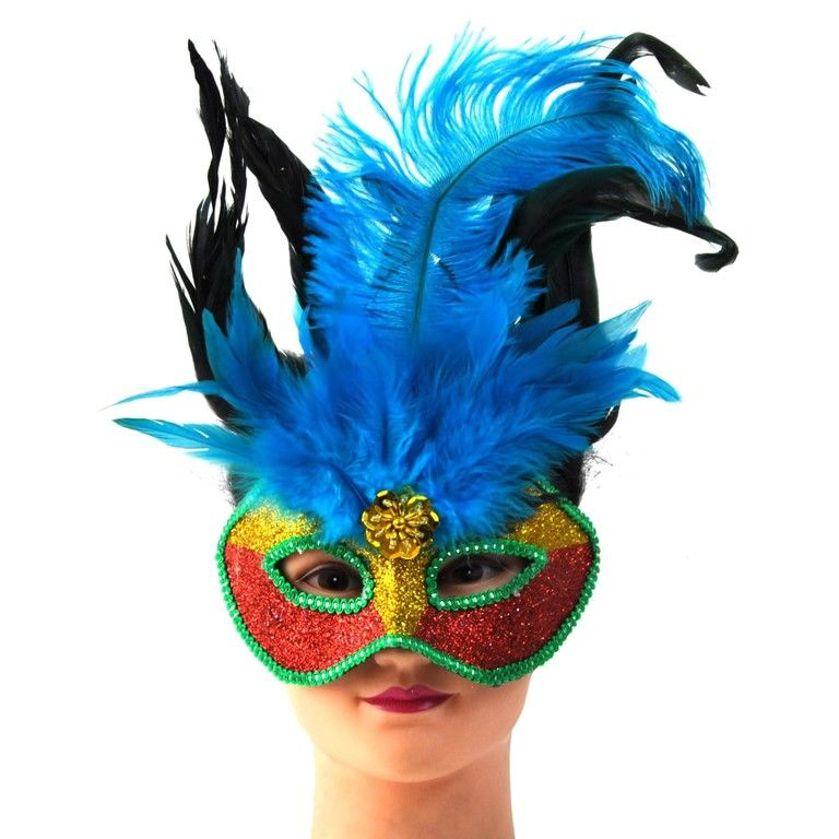 Eine herrliche Parteischablone für Veranstaltungen, Karneval und Kostümfeste. Diese Maske wird mit glitzert auf den vorderen und bunten Federn auf der Oberseite ausgestattet.