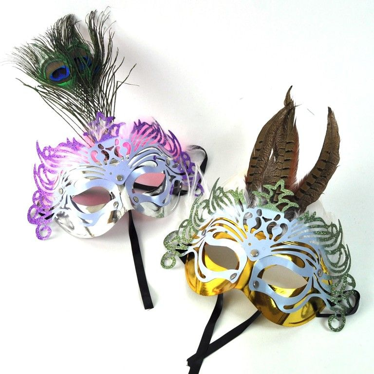 Eine herrliche Parteischablone für Veranstaltungen, Karneval und Kostümfeste. Diese Maske wird mit glitzert auf den vorderen und bunten Federn auf der Oberseite ausgestattet.