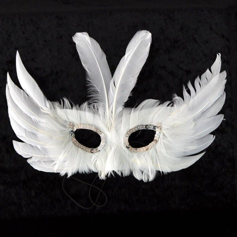 Eine herrliche Parteischablone für Veranstaltungen, Karneval und Kostümfeste. Diese Maske ist flexibel und ist köstlich mit dem Gesicht. Die gesamte Vorderseite der Maske ist mit weißen Federn geschmückt.