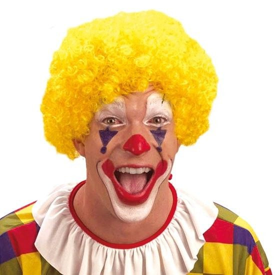 Lustige afro-Clown Perücke in der Farbe Gelb. Nett als Kleidzusatz während des Karnevals, Halloween, Motto-Partys und vieles mehr.