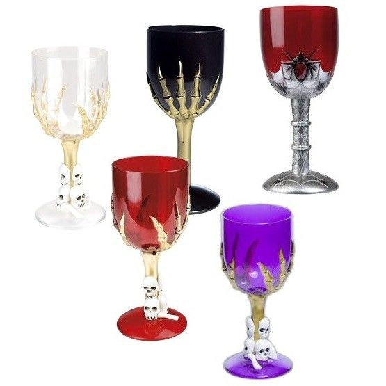 Obscure Kelche mit Klauen, Schädel und Spinnen. Die Kelche sind in verschiedenen Farben und Designs geliefert.