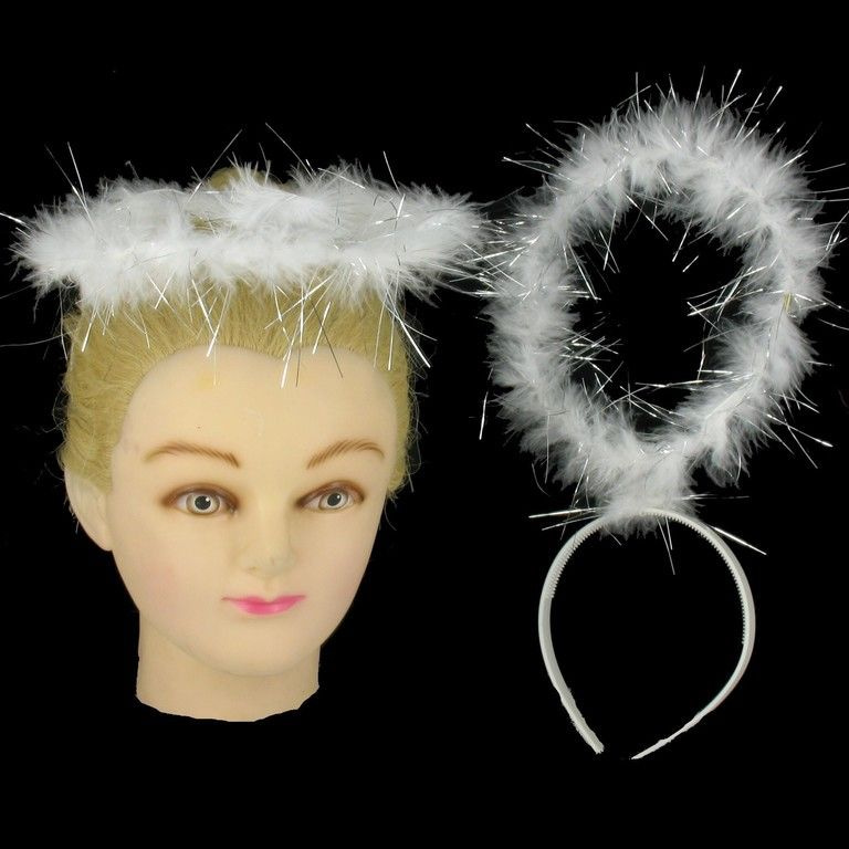 Ein Haarband mit einem flauschigen weißen Halo auf der Oberseite. Wenn diese Haarband auf dem Kopf Sie put'm wie ein kleiner Engel.