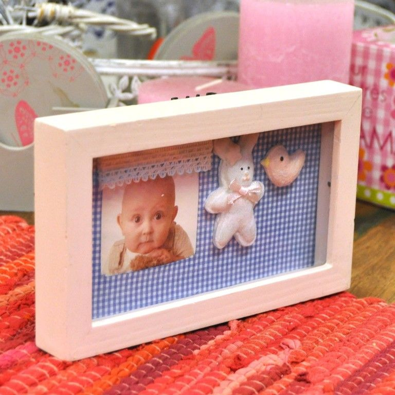 Ein tiefes Bilderrahmen mit meubulair es, wie ein Blick in ein Kinderzimmer mit einem Bild an der Wand. Das Originalbild kann durch ein eigenes Bild ersetzt werden. Der Bilderrahmen kann hinstellen oder suspendiert werden.