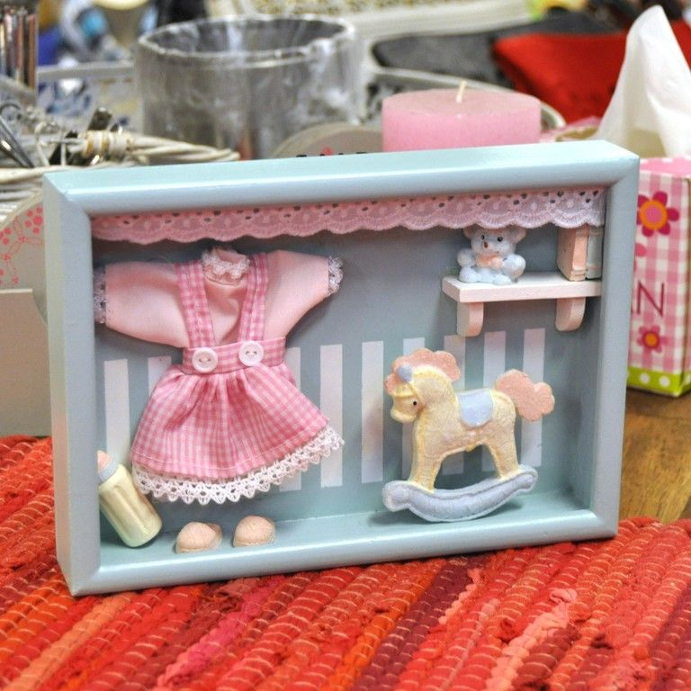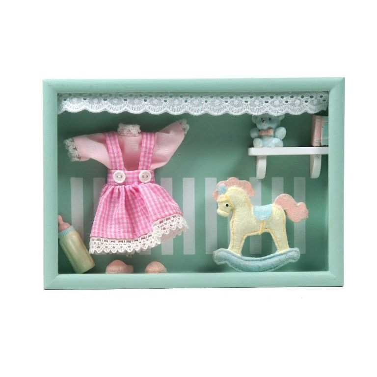 Ein Bilderrahmen mit tiefen meubulair es, wie in einem Kindergarten suchen. Schöne und süße Dekorationen für das Kinderzimmer. Die Wanddekoration kann suspendiert hinstellen oder werden werden.