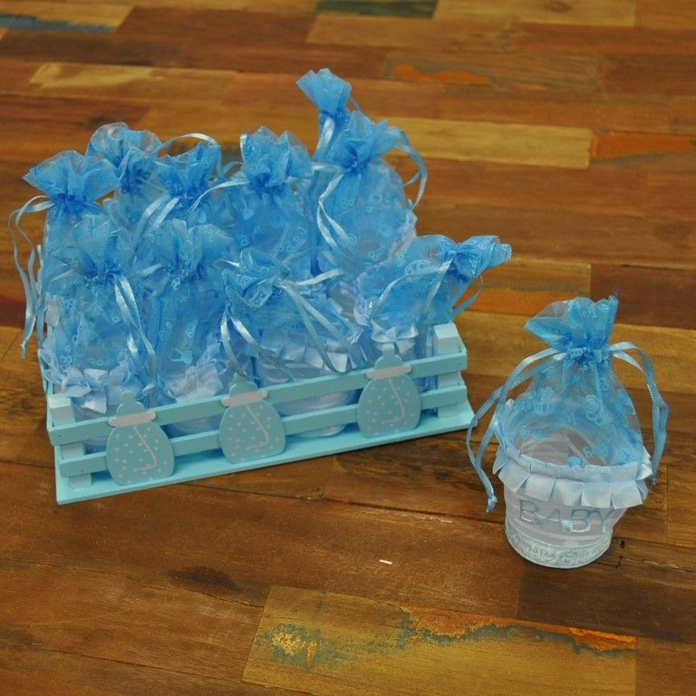 Die Kiste mit 12 Stück blau Geschenk-Verpackung gefüllt.