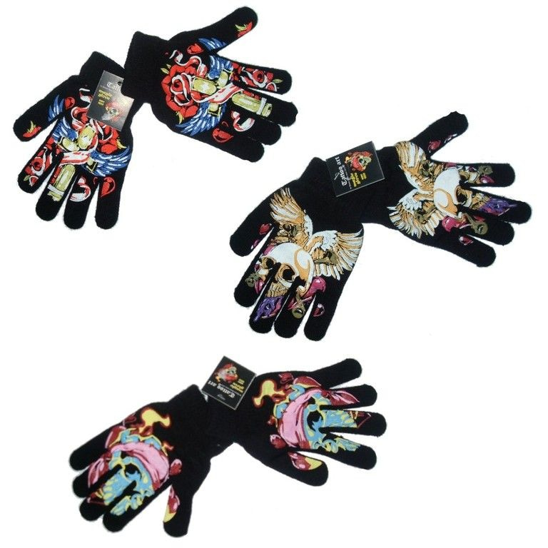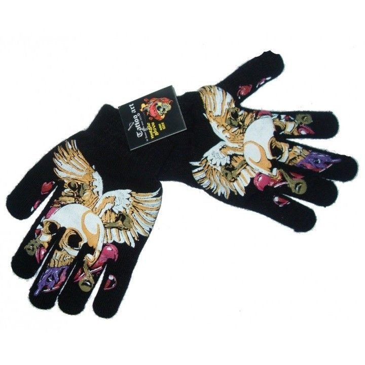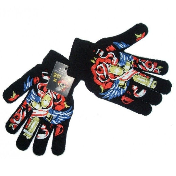 Herrliche schwarze Handschuhe mit einem schönen Tattoo auf dem es gedruckt. Erhältlich in drei verschiedenen Versionen.
