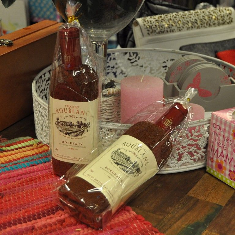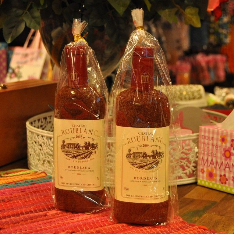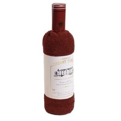 Nettes Geschenk Artikel, haben Sie wahrscheinlich noch nie gesehen. Ein Handtuch wunderschön in Form einer Weinflasche gerollt. Das Label ist sogar um.