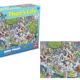 So ist das Leben Puzzle - Dorf, 1000 Stück. Entdecken Sie, was die Leute Erfahrung in der Französisch-Platz! Das Leben, das Rätsel von Goliaths hat die meisten Spaß, chaotische Bilder, die Mitte des Lebens.