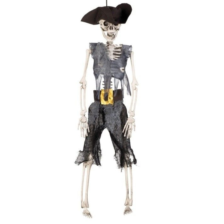 Ein Haupt Skelett von bis zu 40 cm. in Piratenkleidung. Herrliche Dekorationen für Karneval, Halloween und Themenparties.