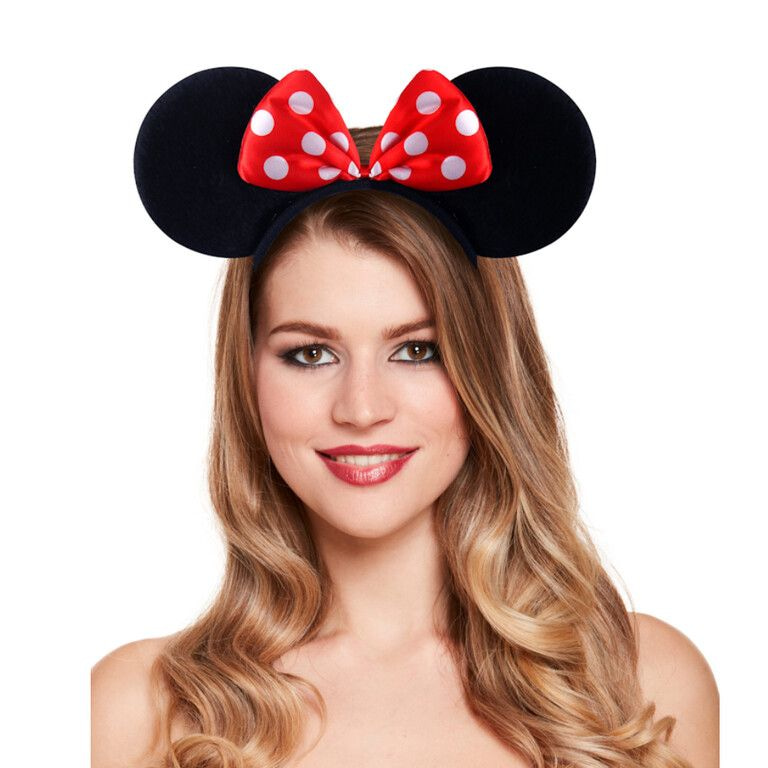Süßes Mausohren-Stirnband mit rot-weißer Schleife.