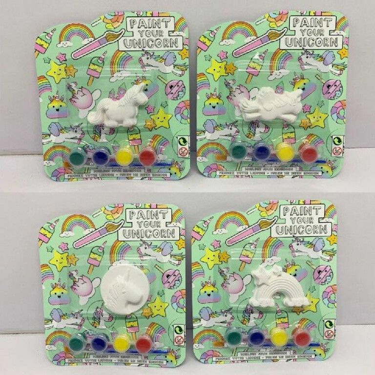 Schilder je eigen Unicorn / Eenhoorn. Leuke kaart met daarop een Unicorn van Gips en 4 potjes verf en verkwastje. Om zo je eigen Unicorn op te schilderen. Wordt in Mix soorten geleverd. Afmetingen kaart: 17 x 19 x 2 Cm