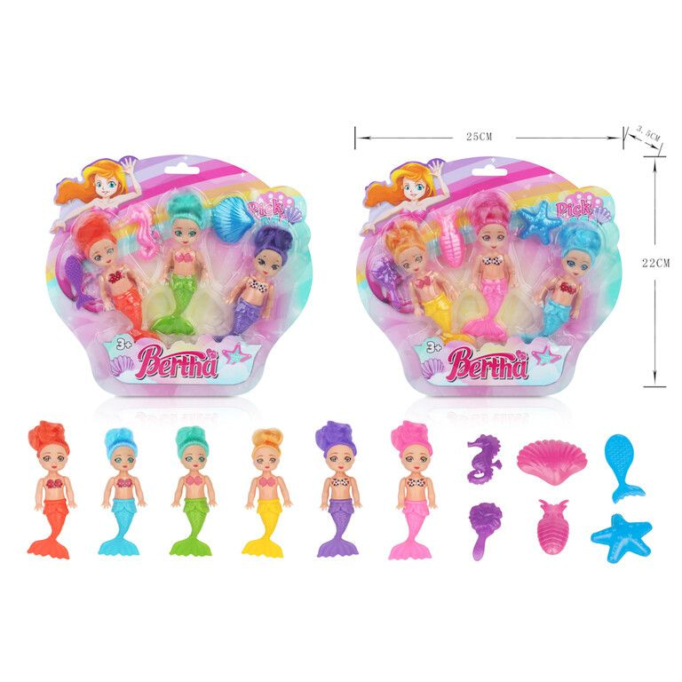 3-teiliges Meerjungfrauen-Puppen-Set auf Karte (6 Stück)