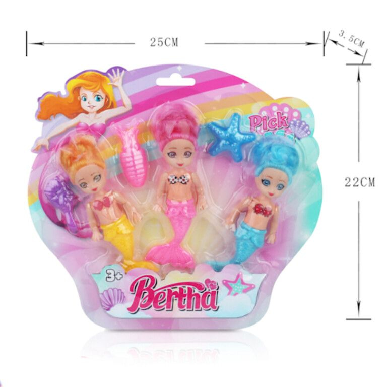 Verzaubern Sie Ihre kleinen Kunden mit diesem funkelnden 3-teiligen Meerjungfrauen-Puppen-Set. Jede Karte enthält drei liebevoll gestaltete Meerjungfrauen (jeweils 13 cm groß). Perfekt geeignet als magisches Mitgebsel, für die Wühlkiste oder als Geburtstagsüberraschung.