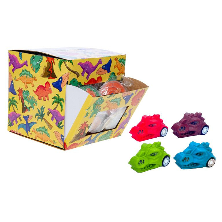 Steigern Sie Ihren Umsatz mit diesen lustigen und attraktiven Pull-Back Dinosaurierköpfen. Verpackt in einem sofort einsatzbereiten 50er-Display, ideal für Impulskäufe an der Kasse. Ziehen Sie den Dinokopf einfach zurück, lassen Sie ihn los und er flitzt automatisch nach vorn! Eine hervorragende Ergänzung für Spielzeugläden, Freizeitparks, Jahrmärkte und Wühlkisten. Geliefert in einer bunten Mischung auffälliger Farben.