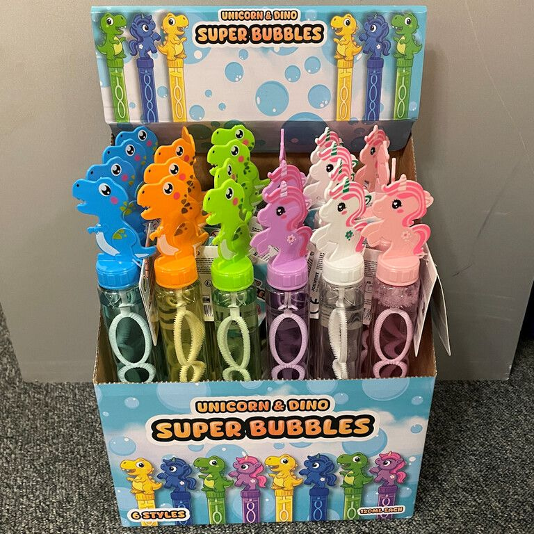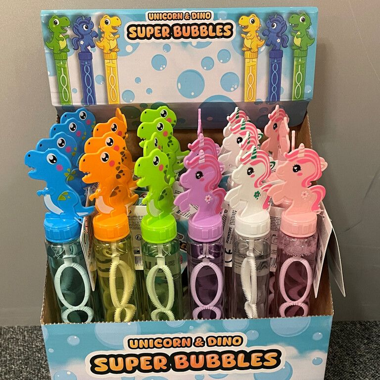 Sorgen Sie für strahlende Kinderaugen und schnellen Umsatz mit diesen Einhorn & Dinosaurier Seifenblasenstäben. Seifenblasen sind der Klassiker unter den Sommerspielzeugen. Diese Stäbe sind mit 120ml Seifenlauge gefüllt und ermöglichen das Pusten von riesigen Blasen. Das Display enthält eine Mischung aus den beliebten Themen Einhorn und Dinosaurier.