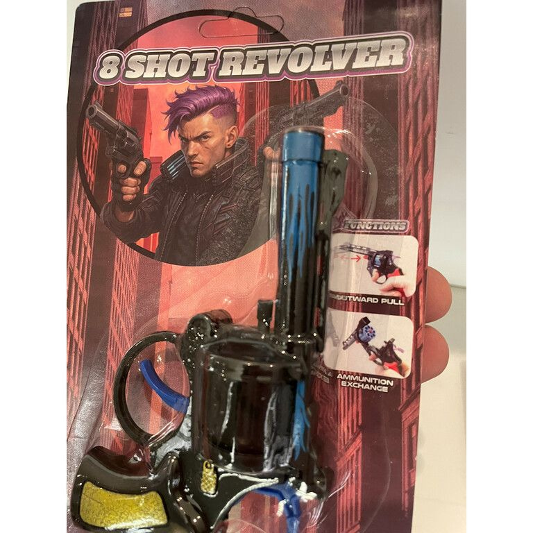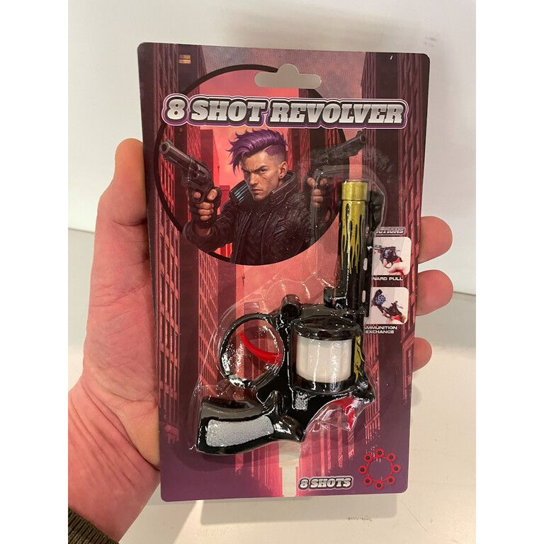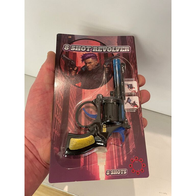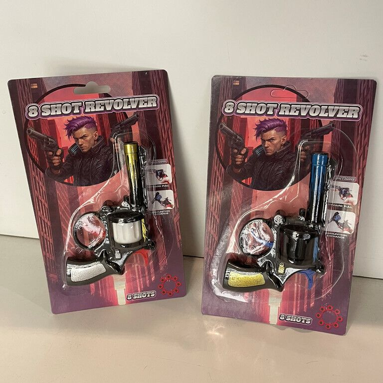 Rüsten Sie Ihr Sortiment mit dieser coolen 8-Schuss Knallpistole auf. Ein bewährter Verkaufsschlager für Spielzeuggeschäfte, Marktstände und Karnevalssortimente, der sofort die Aufmerksamkeit kleiner Abenteurer weckt.