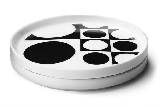 Flachen Platten mit einer schmalen Lünette zu ergänzen Ihre persönlichen Knabbereien während des Essens. Die Zeichen ein Motiv von Verner Panton entworfen.