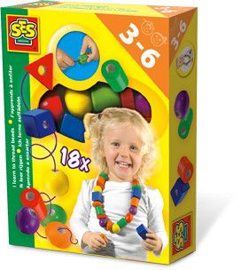 Machen Sie die schönsten Perlenketten mit SES kreativ! Es ist sehr einfach, mit speziell verarbeitete Kordelzug Einfädeln durch die großen Holzperlen zu lernen. So arbeiten Sie an einem schönen Perlenkette, sondern auch Ihre Kreativität und Feinmotorik.