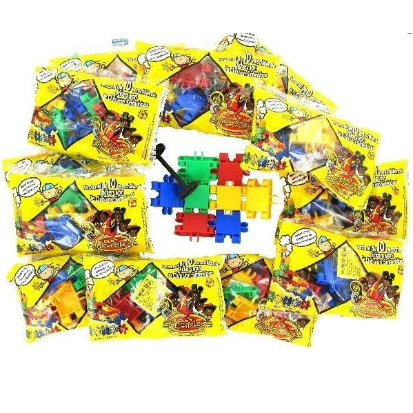 Verein Clic Sinterklaas, eine fröhliche Tasche mit Mausklicks Bausteinen gefüllt, die man verschiedene Dinge bauen kann. Je mehr Taschen, die Sie haben, desto größer und aufwendiger können Sie bauen etwas. Ideal als Geschenk Schuh