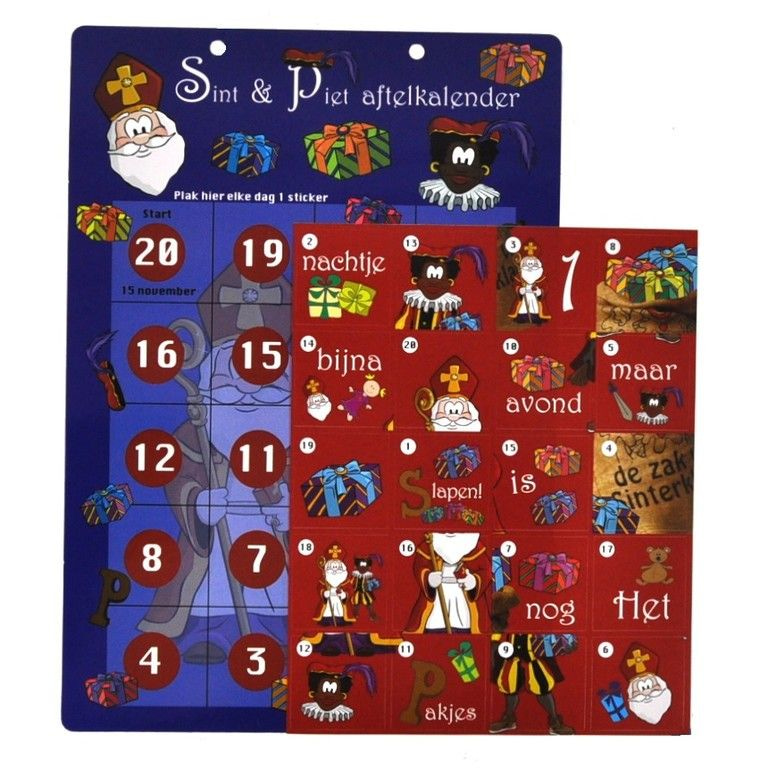 Ein nettes Countdown-Kalender für Kinder. Vom 15. November können die Kinder beginnen, Aufkleber auf dem Kalender einfügen. Wenn sie fertig sind sie in der Nacht zuvor pakjesavond, und es gibt auf dem Kalender "Es ist fast pakjesavond, Schlaf nur eine Nacht!"