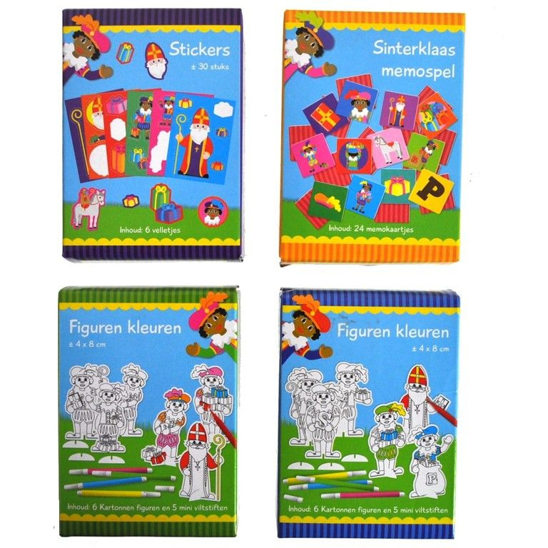 Nizza Sinterklaas Geschenke im Schuhkarton. Diese Boxen sind zum Beispiel kleine Puppen mit Buntstiften, Malvorlagen, Aufklebern und Speicher.
