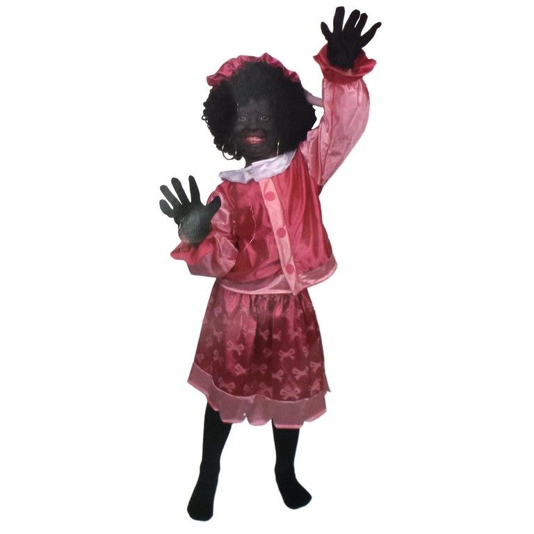 Eine vollständige Schwarz Pietenpak für Mädchen. Dieser Anzug ist für die Kinder aus den leeftijf 4 bis 6 Jahren (110 Größe).