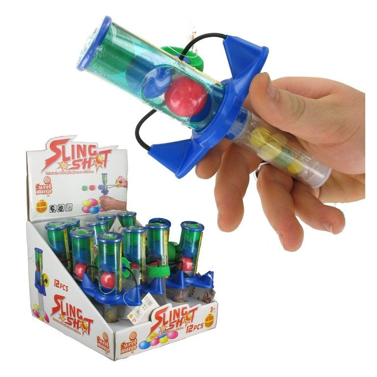 Katapult mit weichen Bällen. An der Unterseite des Griffs auch sie aussehen köstliche Süßigkeiten eingewickelt. Was für eine schöne Kombination.