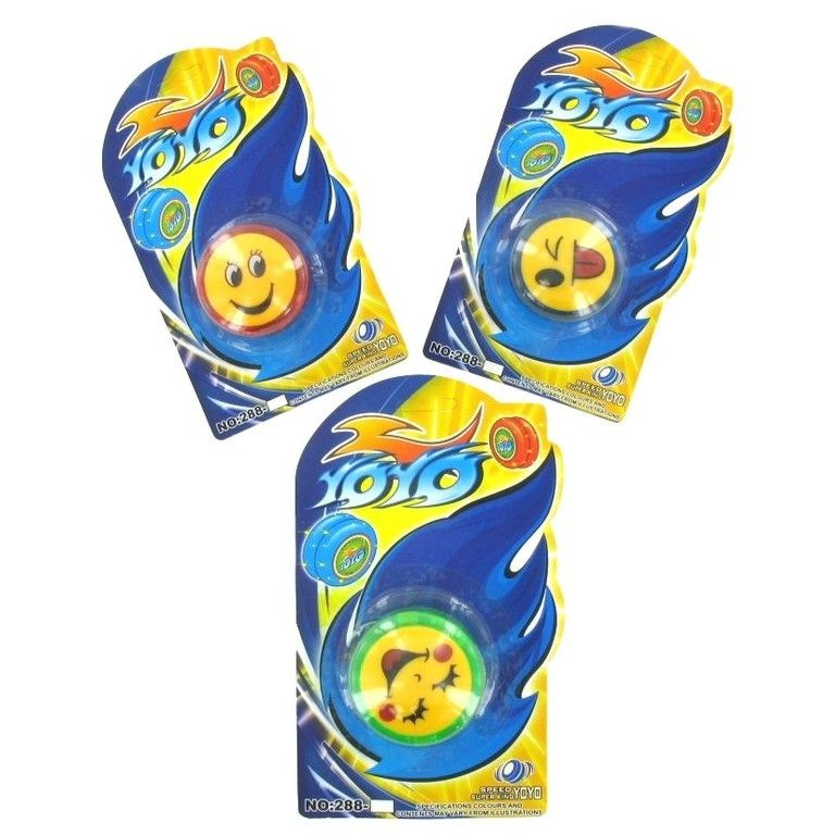 Ein glückliches Gesicht auf einem bunten Yo-Yo. Spaß für Jungen und Mädchen, auch mit Licht.