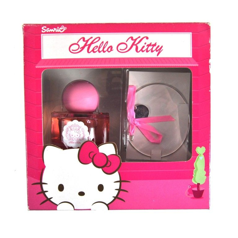 Ein Geschenk-Set von der weltberühmten Katze "Hallo Kitty". In diesem Geschenkset finden Sie eine Flasche von 30 ml finden. köstlichen Duft und ein süßes Armband mit einem Charme von Hallo Kitty drauf.