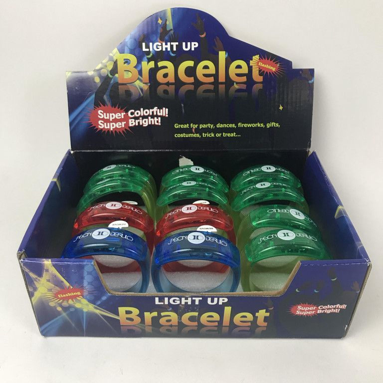 Schöne leuchtende Armbänder, mit schönen hellen Farben. Batterien enthalten. Kommt in Mix-Farben in einem Display.