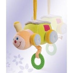 Bunte Musik für über die Krippe in Form eines Zuges, mit Gesicht. Ideal als Geschenk für ein neugeborenes Baby.