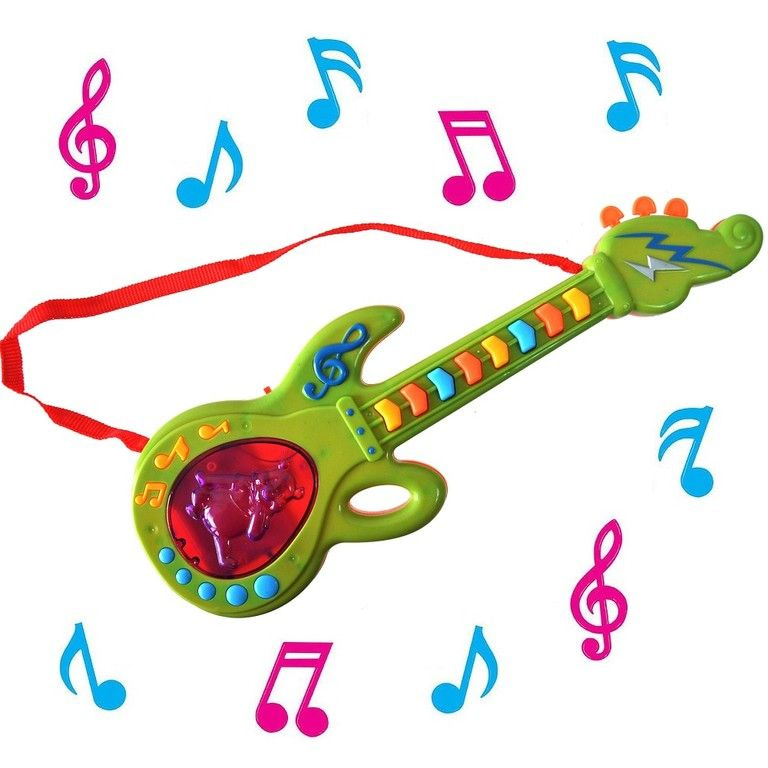 Nettes Spielzeug-Gitarre. Mit acht verschiedenen Tönen auf der Tastatur. Spielzeug für musikalische Kinder unter uns. Ohne Batterien.