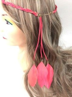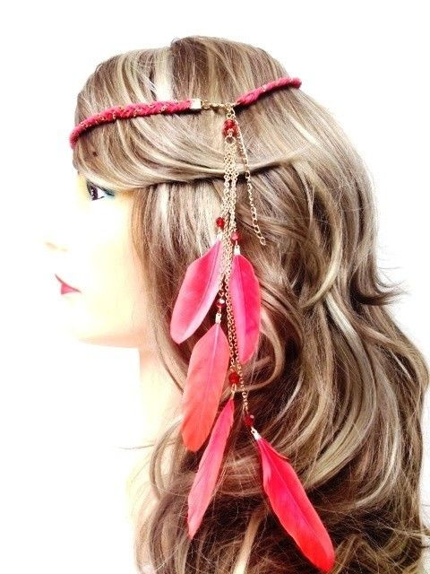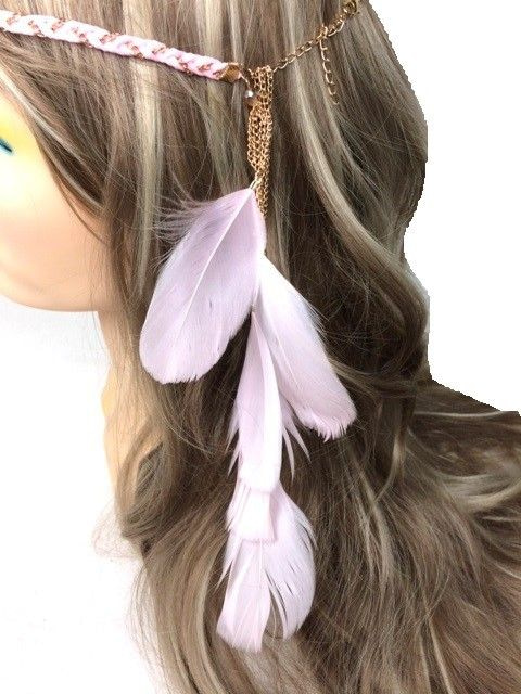 S_600027E - IBIZA LOOK BRAIDED Haarband mit rosa Federn (1.)