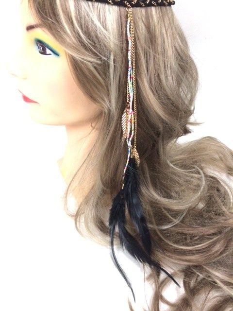 S_600024B - IBIZA LOOK BRAIDED Haarband mit schwarzen Federn (1.)