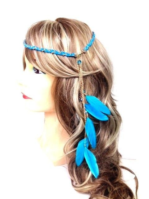 S_1981503 - IBIZA LOOK HAARBAND MIT FEDERN BEIGE TÜRKIS (1.)