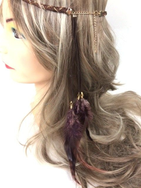 S_600023F - IBIZA LOOK geflochtenes Haar BAND MIT FEDERN Grau / Braun (1.)