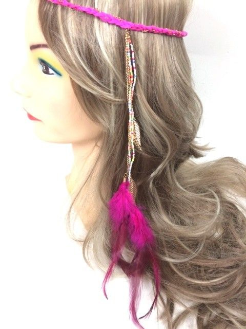 S_600024C - IBIZA LOOK geflochtenes Haar BAND MIT FEDERN FUCHSIA (1.)
